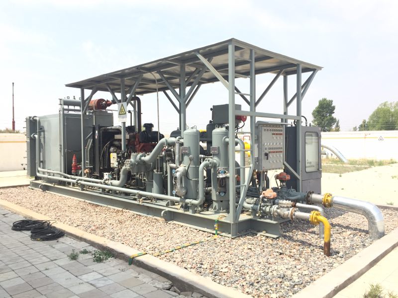 2017年安装于巴基斯坦的3台分体式WG74-12V275GL机组,用于外输气增压其处理量为127万方每天。